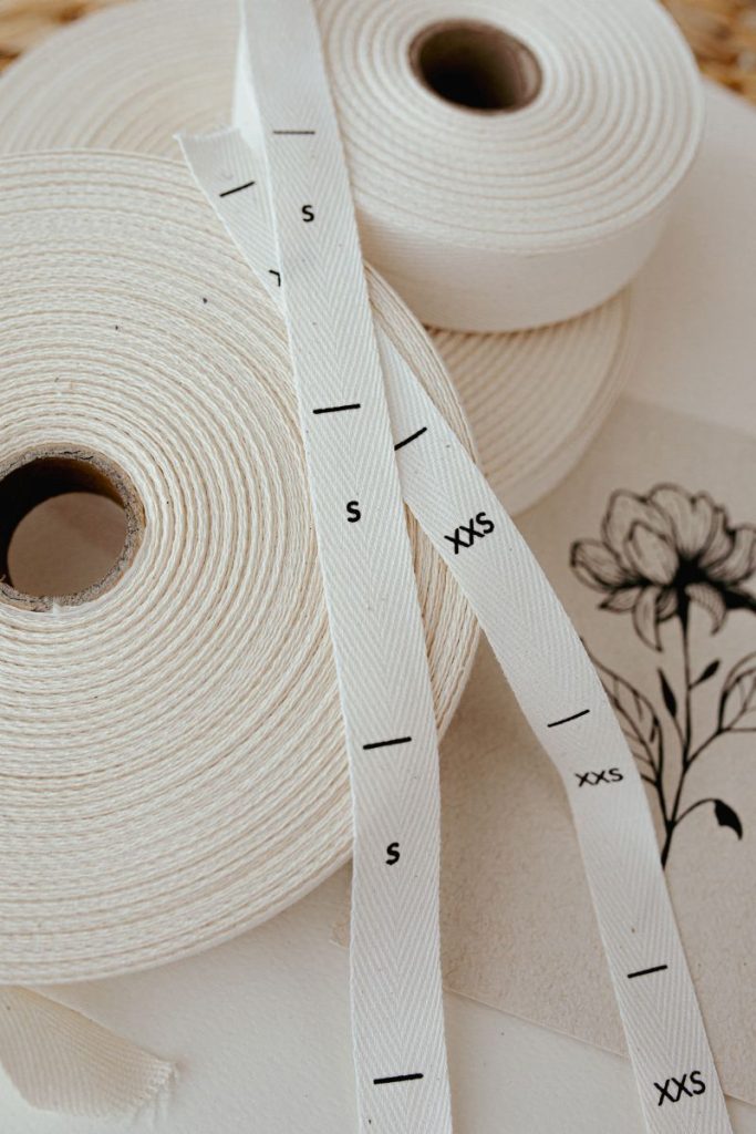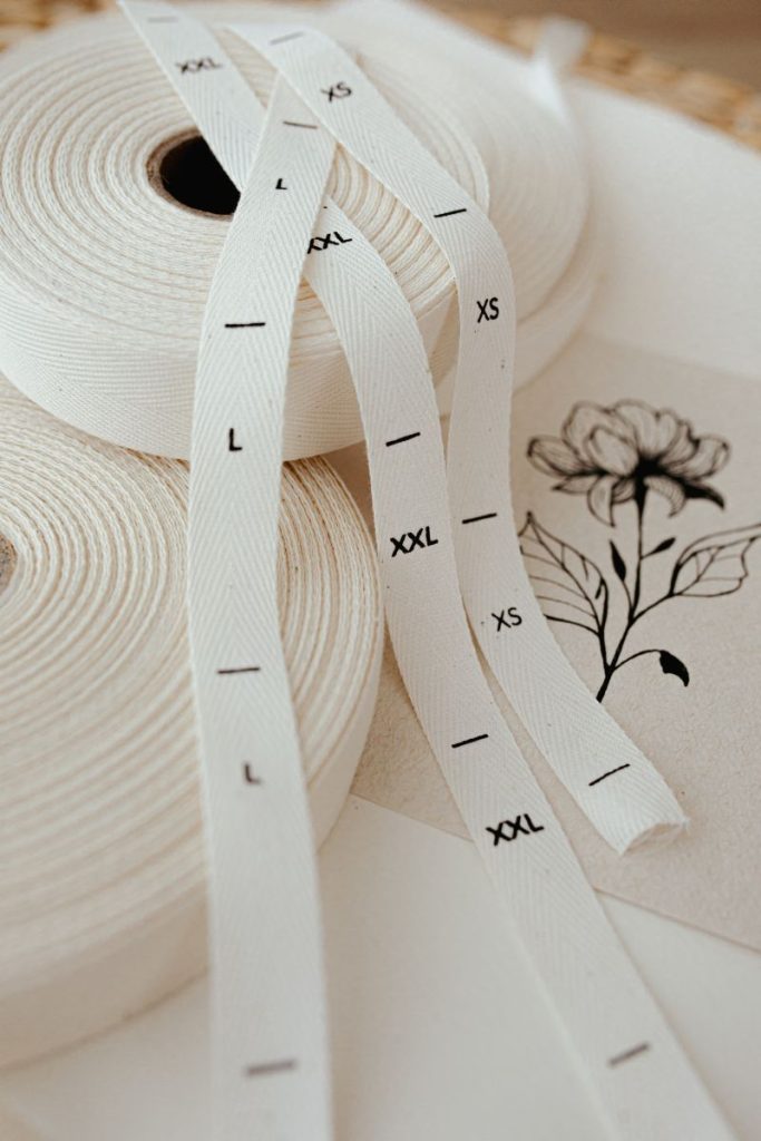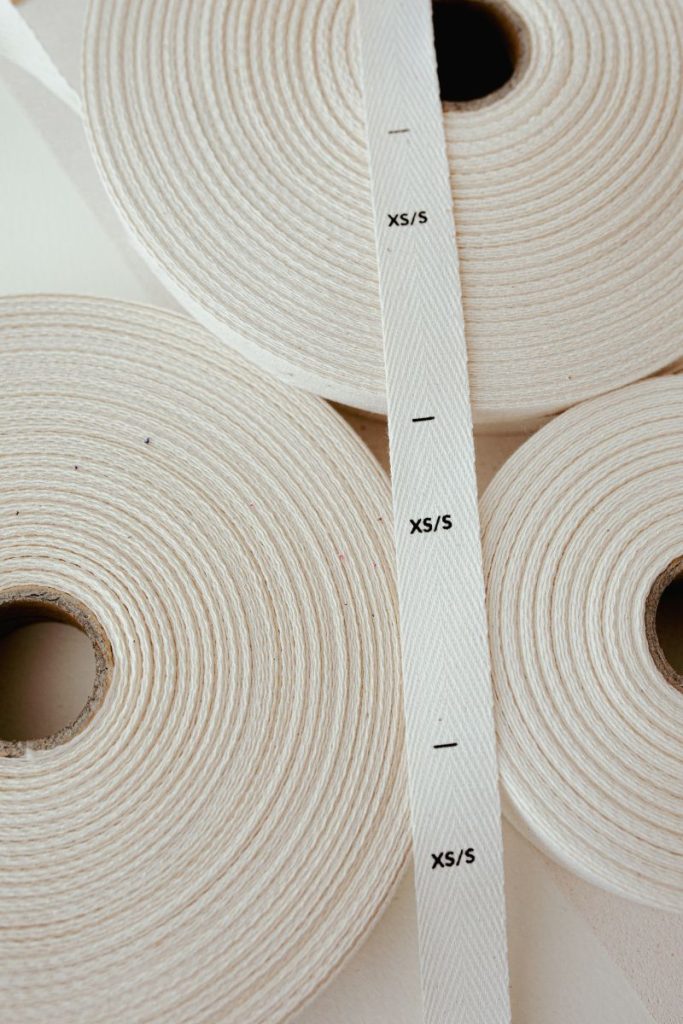 Gotowe metki bawełniane z rozmiarami: